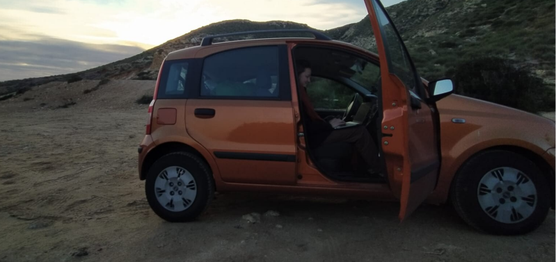De dag dat ik het hotelletje verlaat, weet ik nog steeds niet waar ik die avond zal slapen, maar wat ik wél weet, is dat mijn pad gaat kruisen met dat van een vriend. Niet zomaar een vriend: Jasper! Want ook Jasper, met wie ik deze zomer door Spanje reisde, is sinds een week op pad in zijn gele futuristische Pontiac uit 1994. Een auto die soms wat tegensputtert, maar ondertussen al vele kilometers heeft gemaakt en daarnaast dient als slaapplek. Als je benieuwd bent naar Jaspers avonturen, kijk dan eens naar zijn account op Polarsteps!