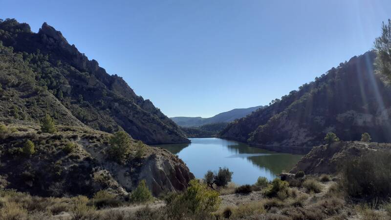 Ongeveer een uur onder Valencia rijden we op goed geluk de heuvels in, en een paar dorpjes en pogingen later komen we uiteindelijk op een hobbelig bergweggetje terecht. Daar vinden we, middenin de verlaten heuvels en naast een opgedroogde rivier, een mooie kampeerplaats.