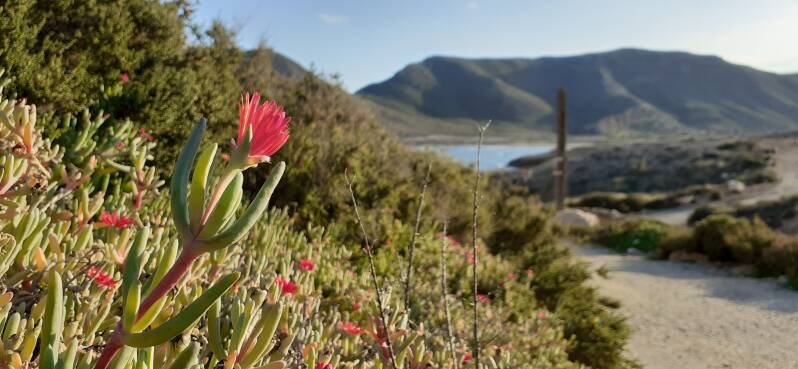En zo typ ik nu al zittend op mijn bijrijdersstoel deze blog, een muziekje aan, en met zicht op spectaculaire rotsen, de zee, cactussen, palmbomen en allerlei bijzondere vogeltjes. De volle maan begint al helder te schijnen. Vanavond kamperen Jasper en ik aan het strand, in het gezelschap van een aantal campers, en omdat we ondertussen al op de meest zuidelijke lijn van Spanje zijn is het ’s nachts maar liefst 8 à 10 graden. Wat een luxe.